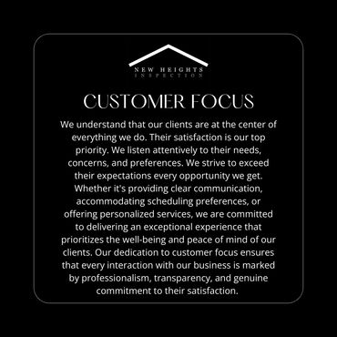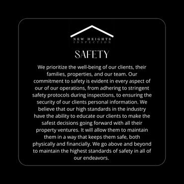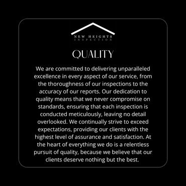 At New Heights inspection we want to provide you with peace of mind through all your property ventures, ease of processes for those of you working in the real estate industry, and education to continue to know how to improve your property experiences no matter where you are at in your property ventures. We draw upon our extensive experience and understanding of construction intricacies, to provide detailed reports of your services, that give insight on a properties true condition and structural integrity. Our dedication to excellence and ability to provide insights beyond the surface-level evaluation proves invaluable.